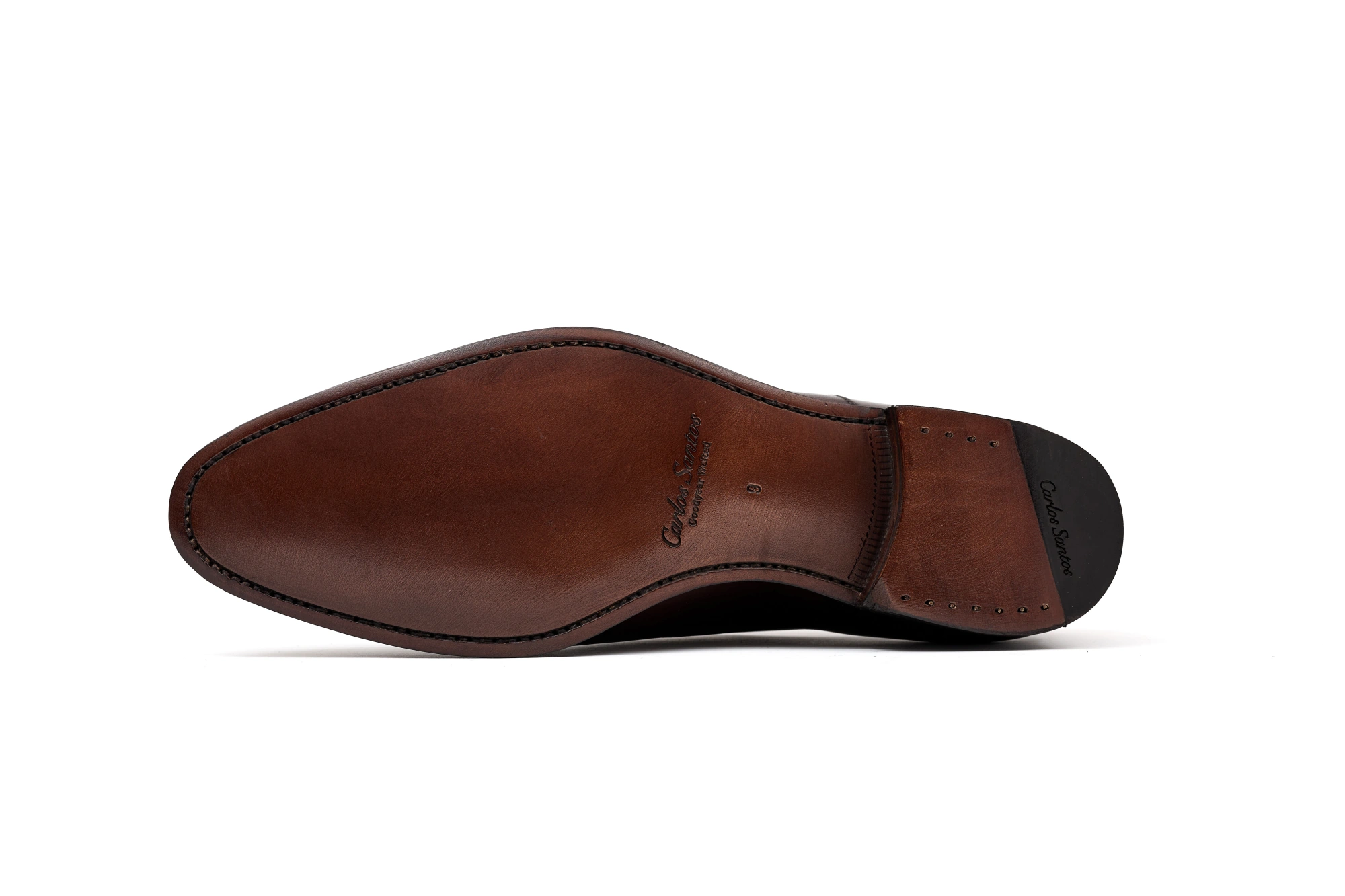 Shell Cordovan is highly durable and easy to care for. Simply nourish the leather with a dedicated cream. Dust can be removed, and shine restored by brushing with a horsehair brush. No wax polish or additional waterproofing is required.