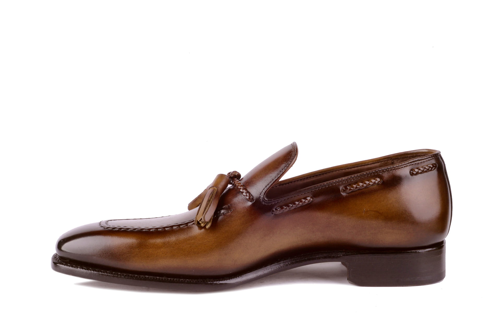 Brief description: Tassell loafer with a leather sole.