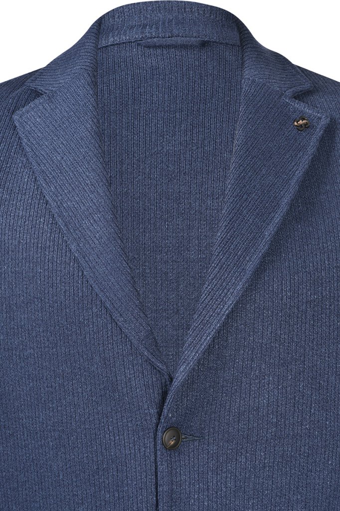 Ribbed knit blazer made from a linen and cotton blend. Notched lapels, patch pockets, and a two-button closure give it an elegant character, while natural fibers enhance breathability and freshness. A versatile model, perfect for any occasion, even on the hottest days. The blazer also features a convenient internal pocket. Made in Italy.