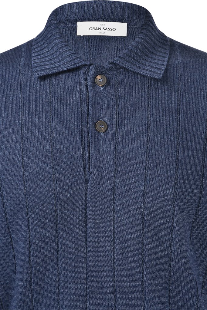 Ribbed short-sleeve polo shirt made from a double-layer linen-cotton knit. Contrasting details on the sleeve edges and hem give it a distinctive British character. A versatile model that also pairs well with a knitted jacket, creating a refined urban look. Regular fit. Made in Italy.